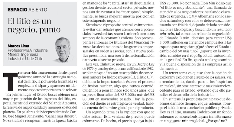 Columna sobre el litio - (El Mercurio de Santiago)