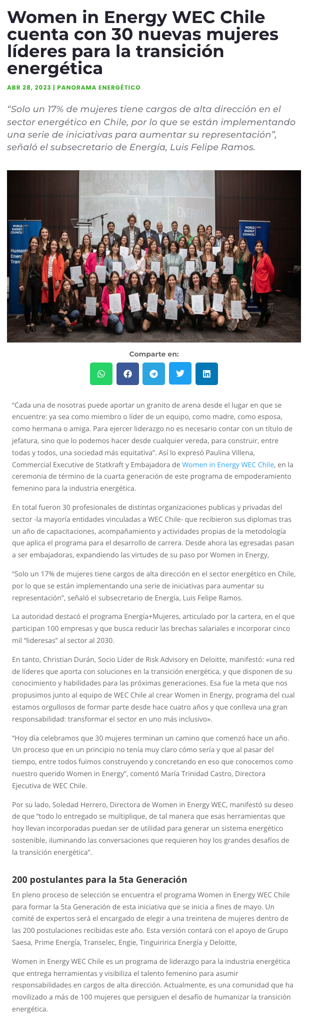 Women in Energy WEC Chile cuenta con 30 nuevas mujeres líderes para la transición energética - (portalinnova.cl)