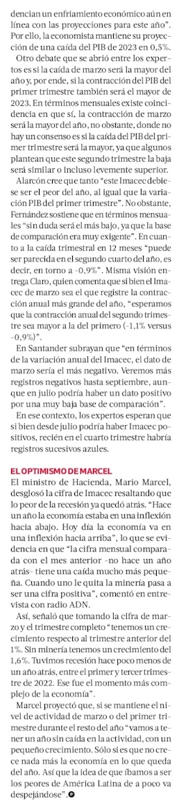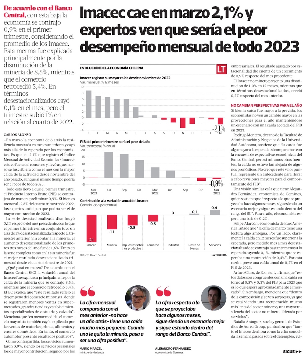 Tras negativo Imacec de marzo, la economía acumula 2 trimestres consecutivos de caída - (El Mercurio de Santiago)