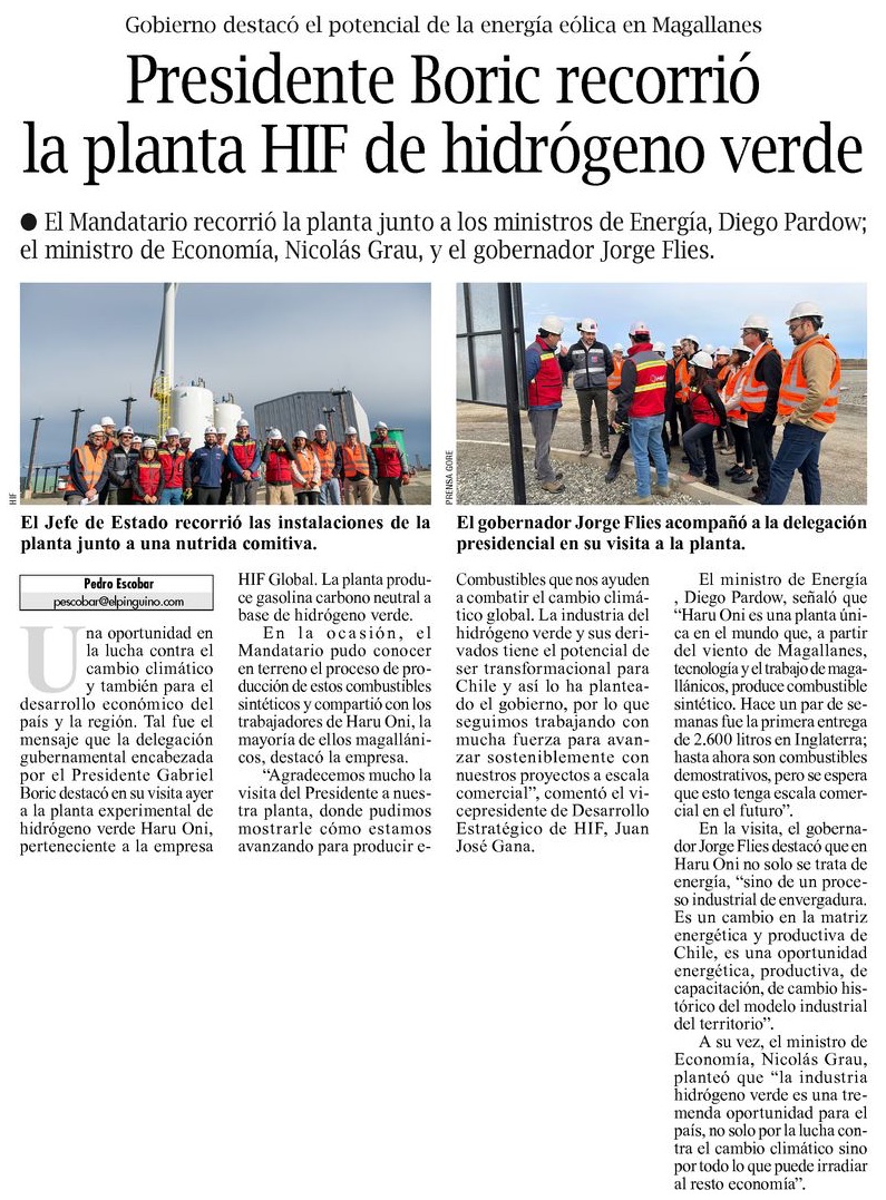 Presidente Boric visita planta de hidrógeno - (El Mercurio de Santiago)