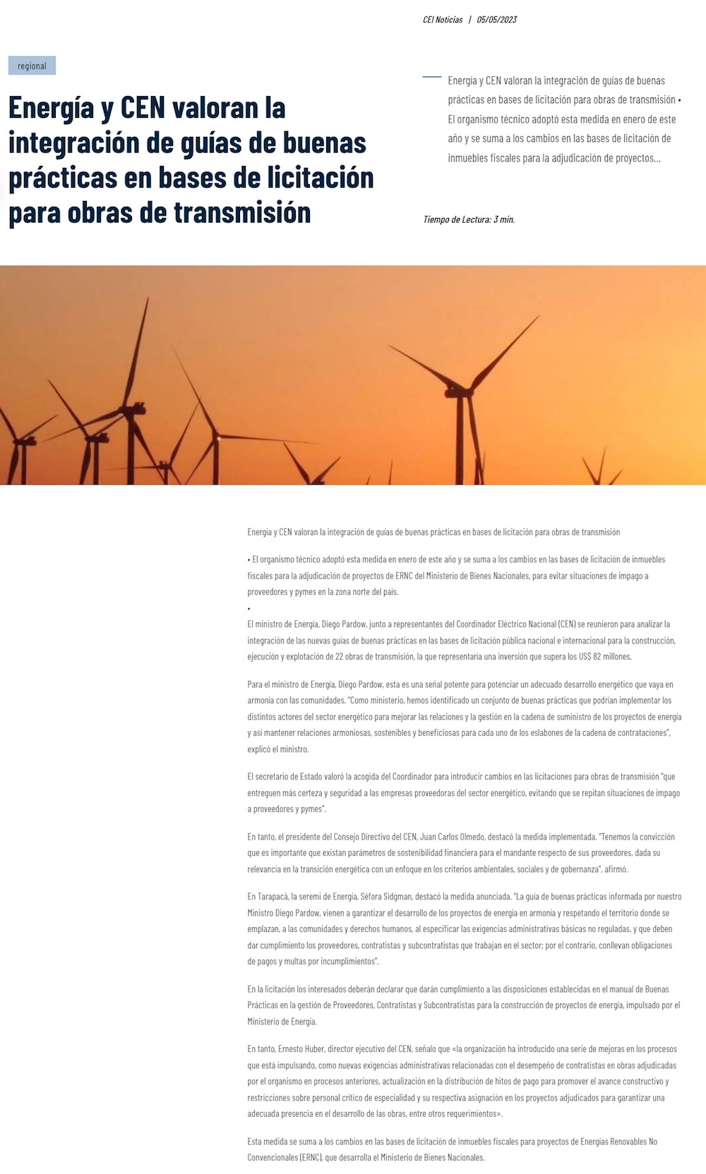 Energía y CEN valoran la integración de guías de buenas prácticas en bases de licitación para obras de transmisión - (elreporterodeiquique)