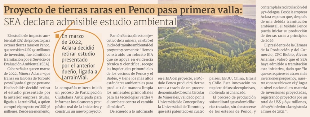 SEA declara admisible nuevo proyecto de tierras raras en Penco - (El Sur)