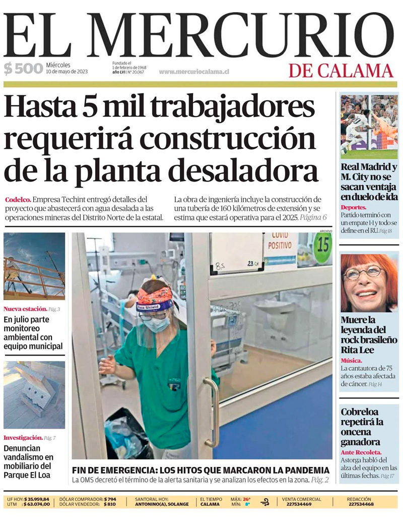 Hasta 5 mil trabajadores podría considerar la planta desaladora - (El Mercurio de Antofagasta)