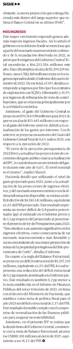 Chile esquivaría recesión en 2023: Hacienda mejora proyección del PIB pero ajusta 2024 - (Diario Financiero)