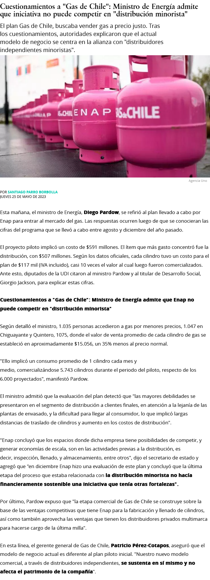 Plan piloto de Energía y Enap: El balón de gas más caro de la historia que enreda al Gobierno - (La Segunda)