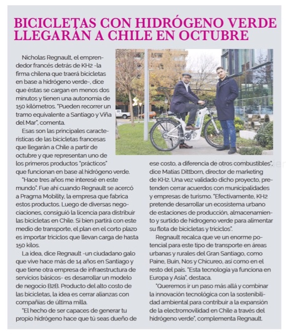 Llegan a Chile las bicicletas con hidrógeno verde: se cargan en dos minutos y puede recorrer hasta 150 km - (The Clinic online)