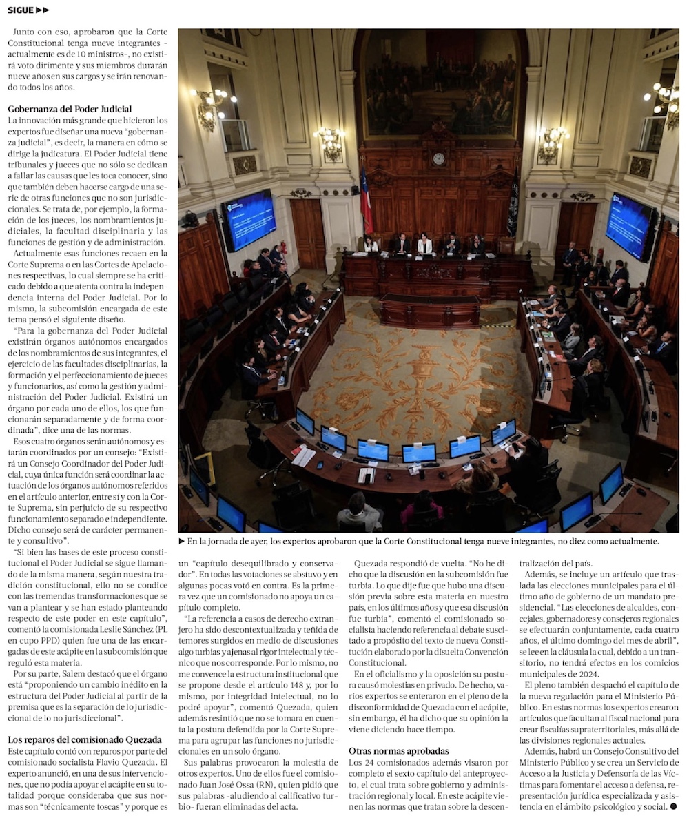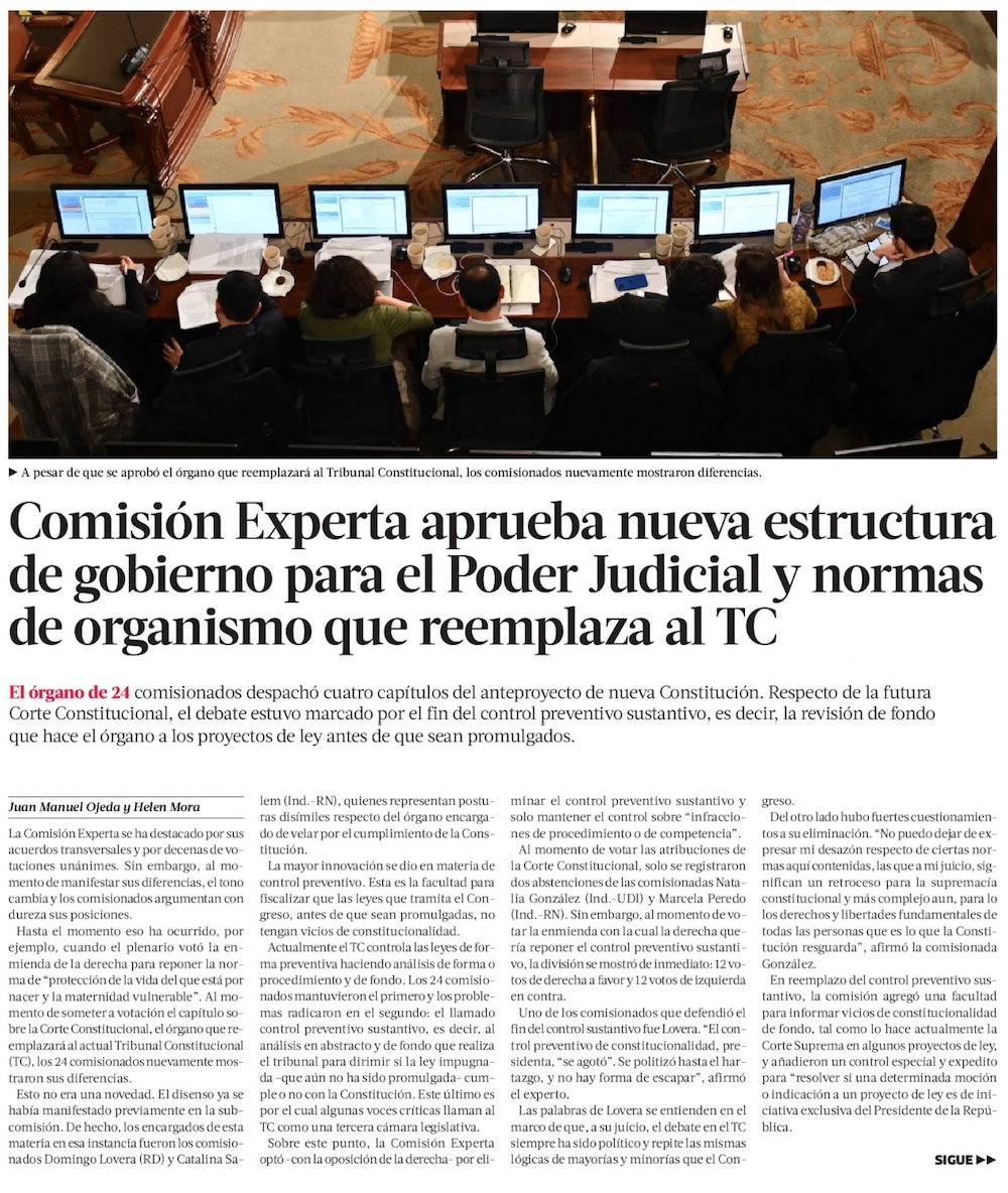 Comisión Experta aprueba nuevo gobierno judicial y rechaza reponer el control preventivo en la Corte Constitucional - (El Mercurio de Santiago)