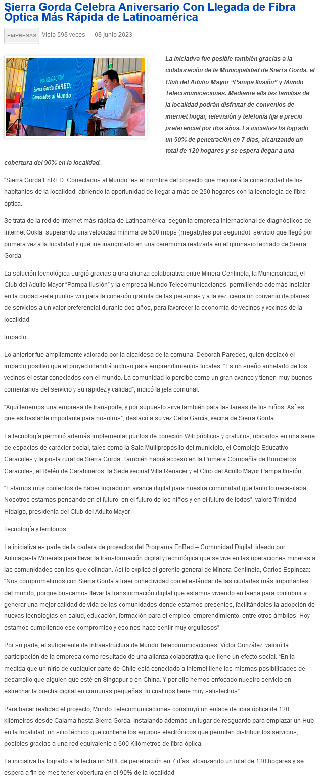 Fibra óptica llega a Sierra Gorda - (reporteminero)