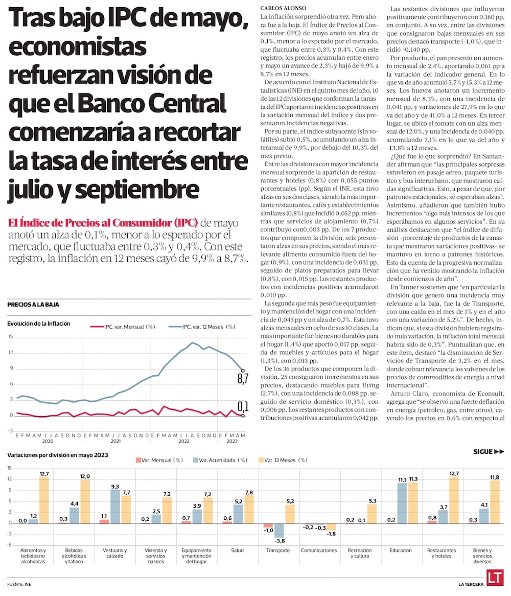 Tras IPC de mayo, mercado ve mejor cierre de año y abre puerta a un retorno más rápido a la meta de 3% - (Diario Financiero)