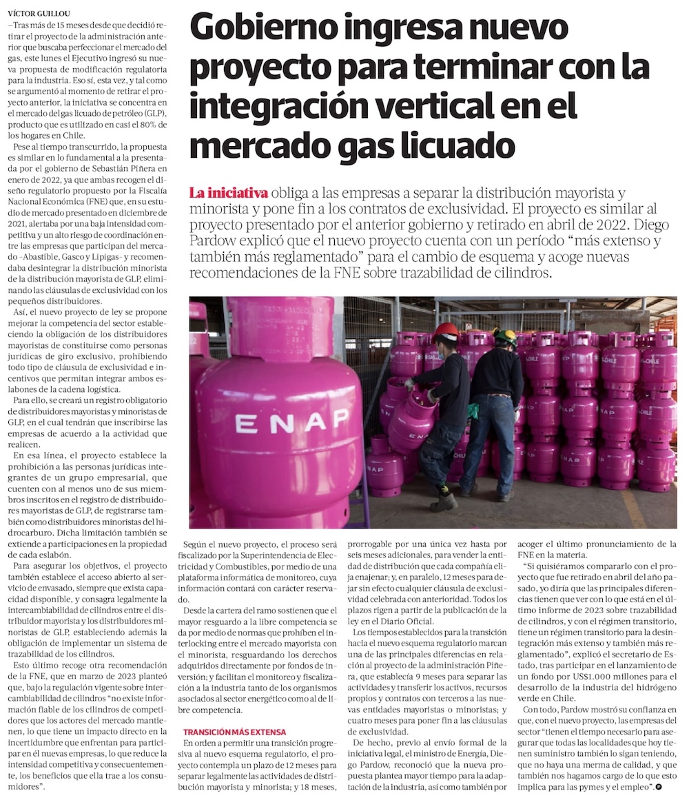 Gobierno propone plazo de doce meses para desintegración del mercado del gas licuado - (El Mercurio de Santiago)