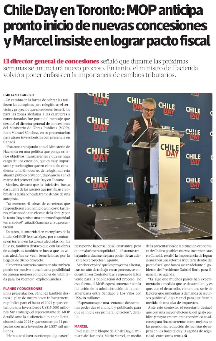 Gobierno se despliegan en Canadá para captar inversiones en OOPP y prepara cambios a tarifas en autopistas - (Diario Financiero)