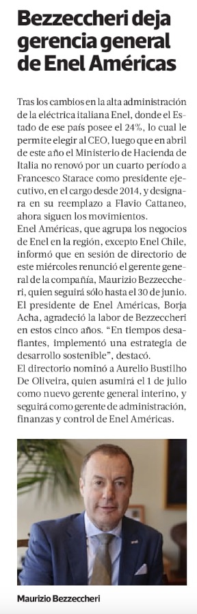 Bezzeccheri deja la gerencia general de Enel Américas - (El Mercurio de Santiago)