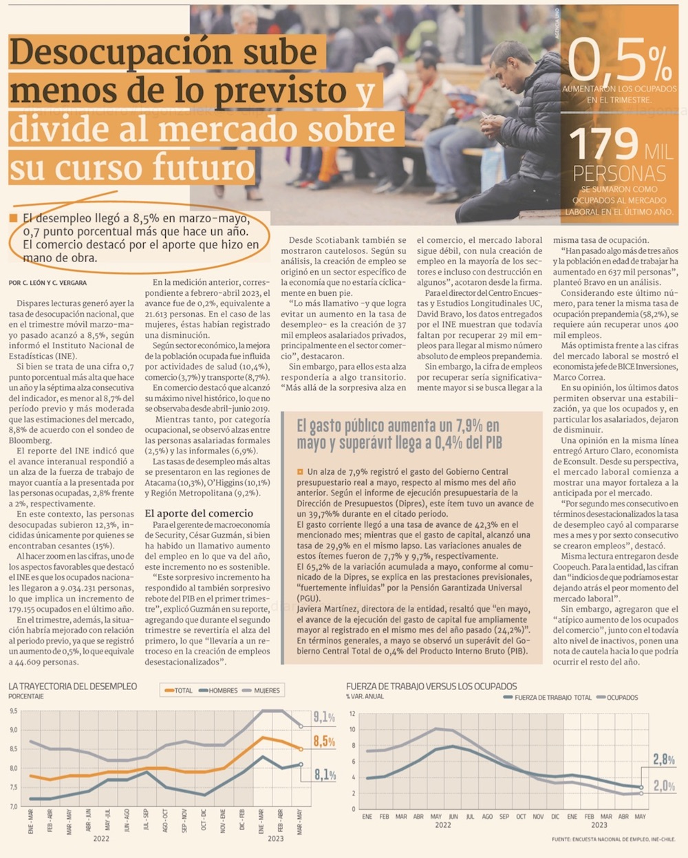 Tasa de desocupación sube a 8,5% y mejora calidad de empleos con asalariados privados - (El Mercurio de Santiago)