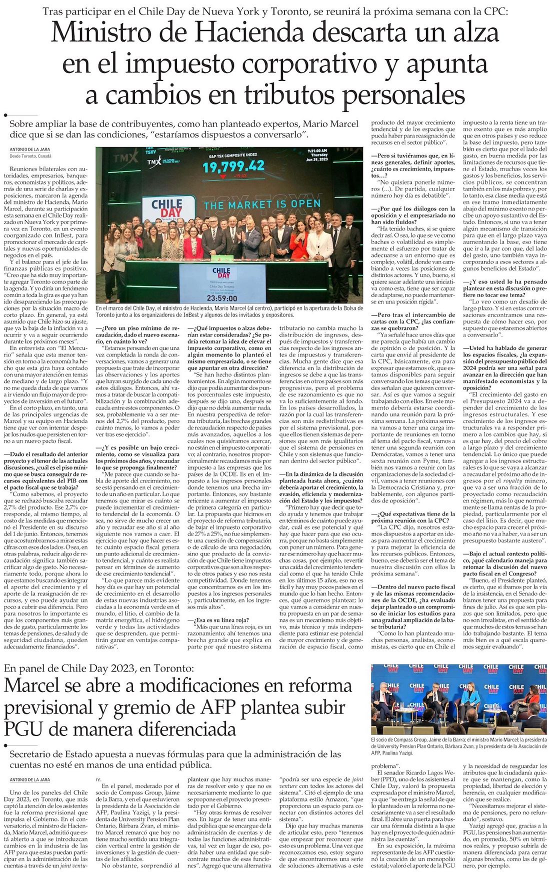 Debate previsional en Chile Day: Marcel se abre a modificar la reorganización de la industria de las AFP - (Diario Financiero)