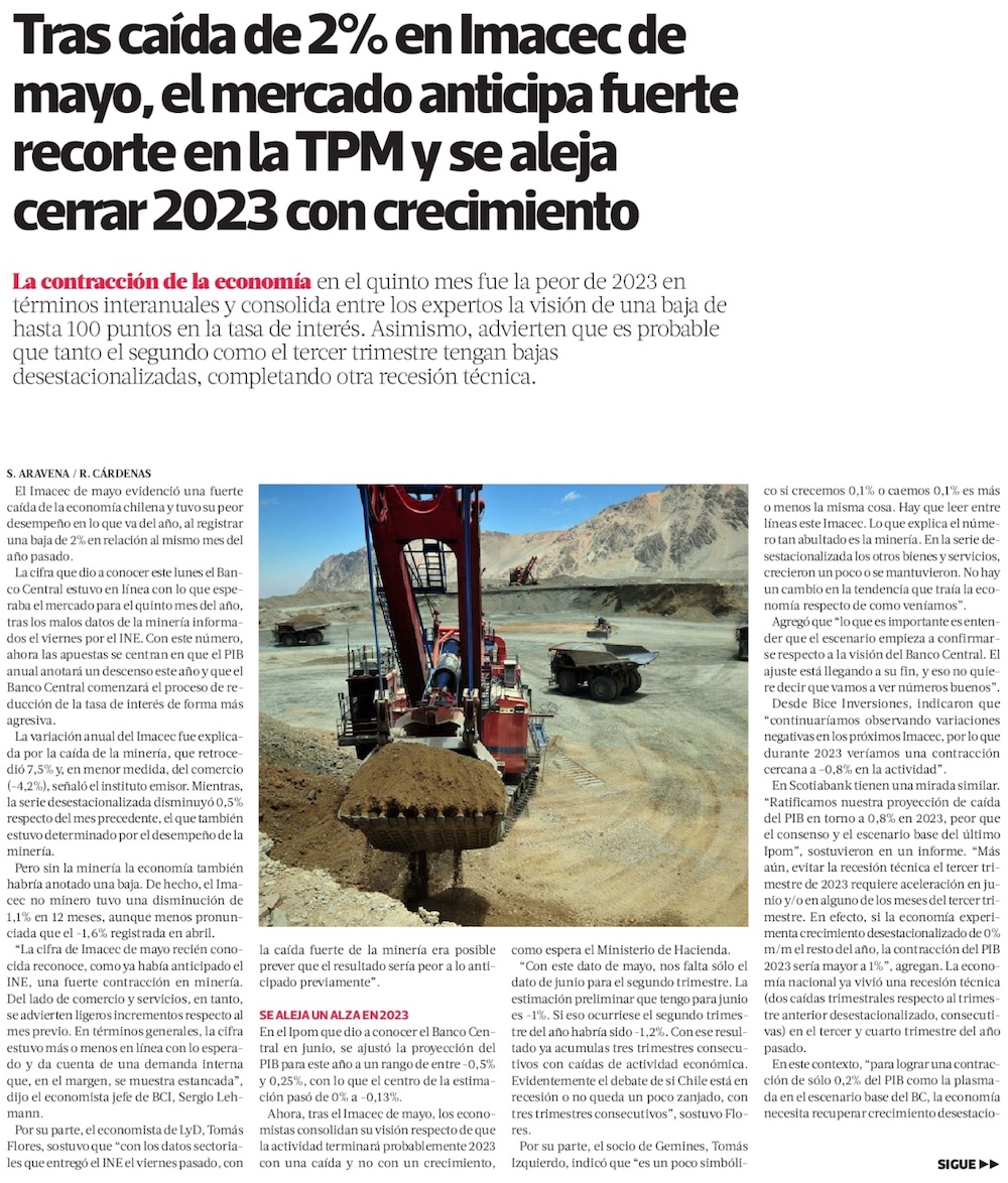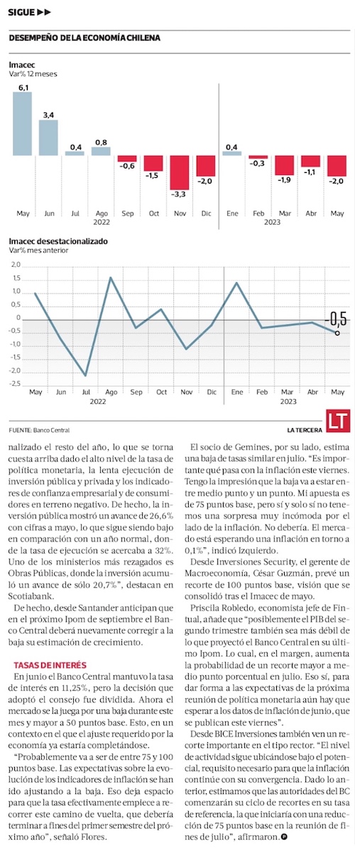 Se afianza pronóstico de baja de tasas de 75 puntos tras nueva caída de la economía y en medio de ajuste de sectores productivos - (Diario Financiero)