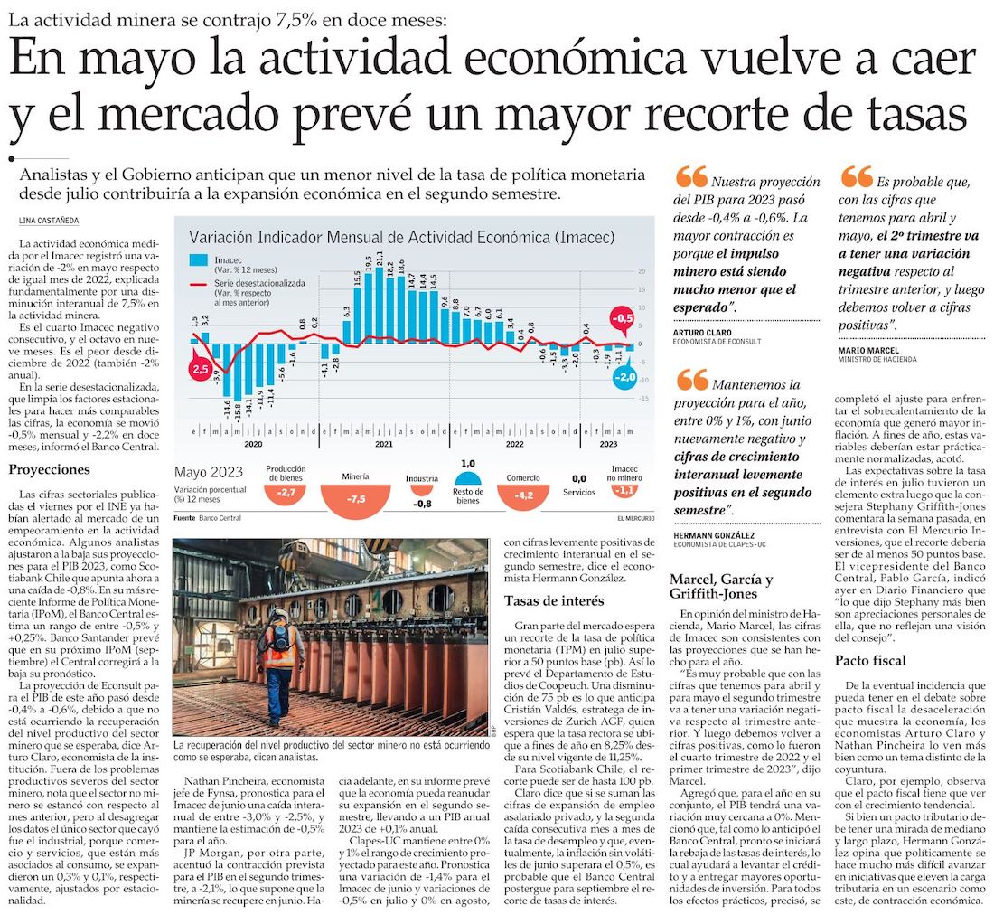 Caída de mayo refuerza idea de que la economía se contraerá este año - (La Segunda)