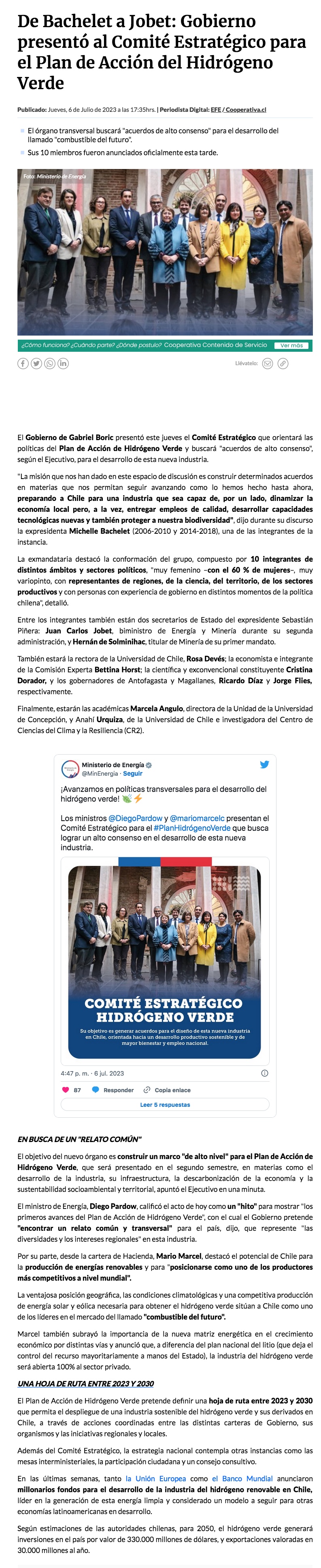 Con Bachelet y exministros de Piñera: Gobierno presentó Comité Estratégico del Plan Acción Hidrógeno Verde - (radio.uchile online)
