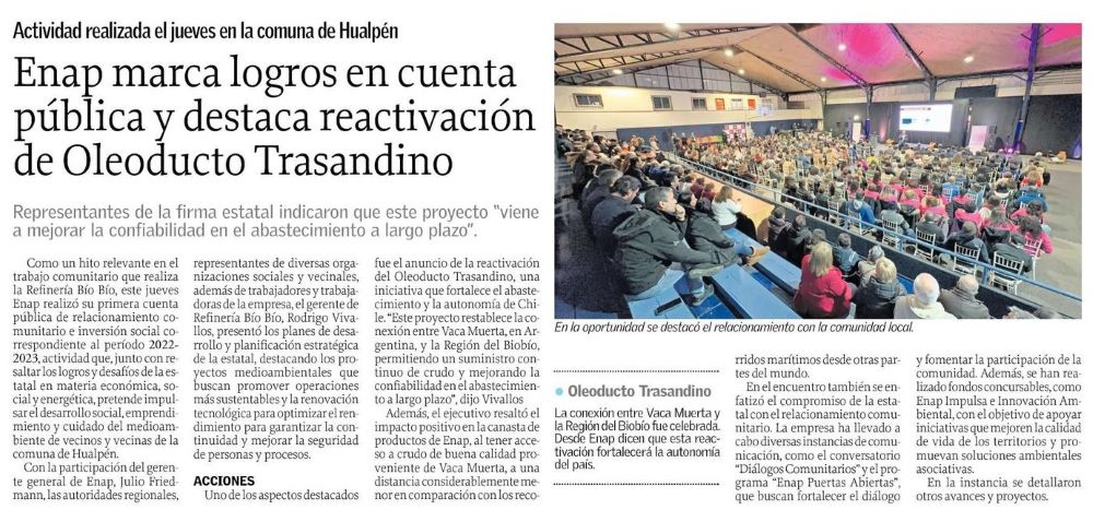 Primera cuenta pública de ENAP Refinería Bío Bío de cara a la comunidad - (El Sur)