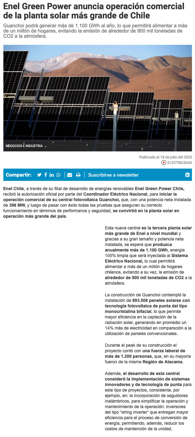 Guanchoi: la planta solar más grande de Chile inicia sus operaciones - (El Mostrador)