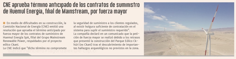 Proyecto Ckani: CNE termina los contratos de suministro por hallazgos arqueológicos - (El Mercurio de Calama)