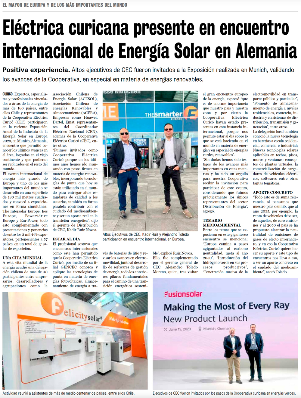 Eléctrica curicana presente en encuentro internacional más grande de Energía Solar en Alemania - (diariocurico.cl)