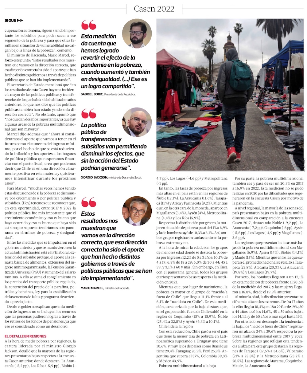 Casen 2022: pobreza cae gracias a apoyo estatal, pero expertos ven reto en mujeres, empleo y regiones - (Diario Financiero)