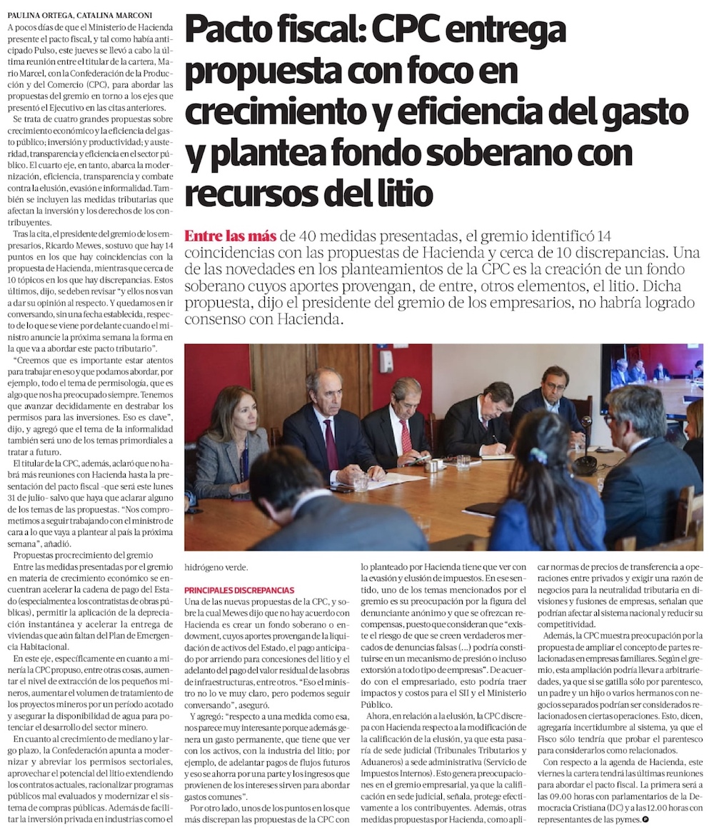 CPC propone a Hacienda racionalizar gasto público e invariabilidad tributaria para proyectos de inversión - (Diario Financiero)