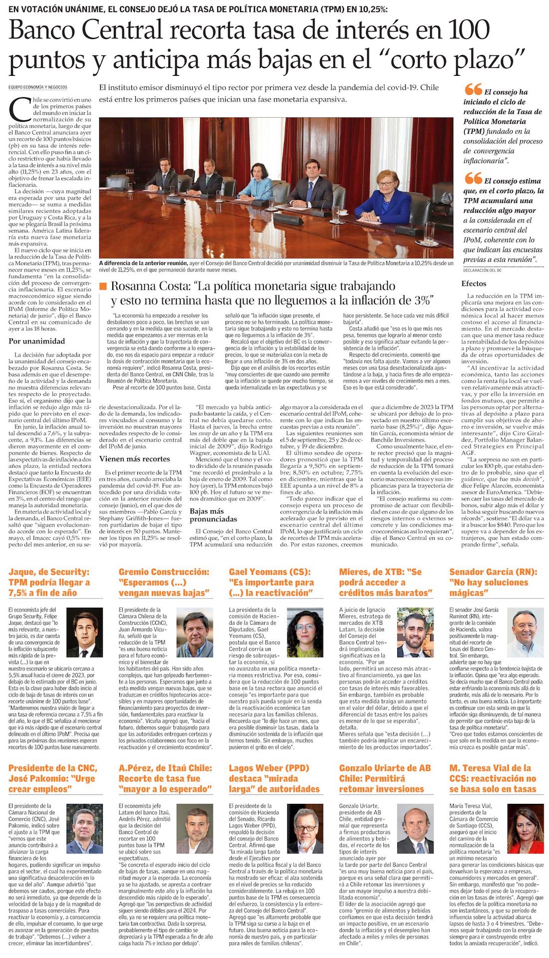¿Cómo sigue la baja de tasas? Recorte de 100 puntos priman en el cronograma de mercado - (Diario Financiero)