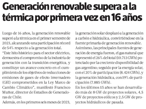 Generación renovable supera a la térmica por primera vez en 16 años - (Pulso Online)