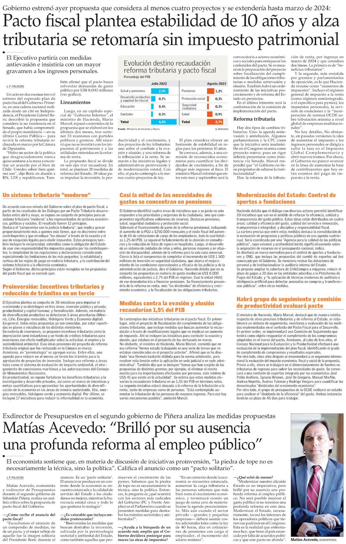 Pacto fiscal: Boric busca recaudar 2,7% del PIB, desecha insistencia en el Senado y renuncia a impuesto al patrimonio y a las utilidades retenidas - (Diario Financiero)