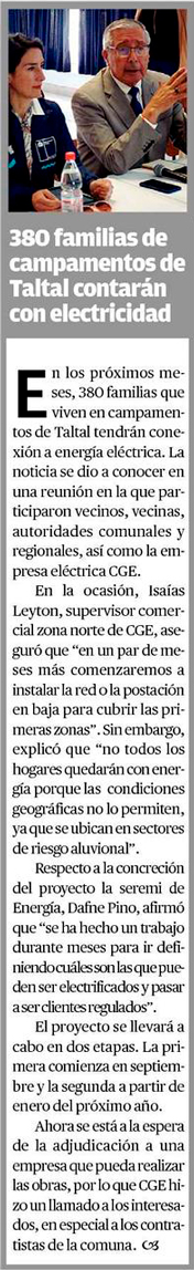 380 familias de campamentos de Taltal contarán con electricidad - (elamerica)