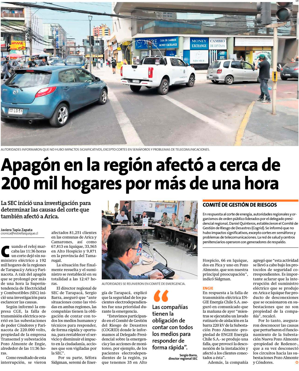 Corte de energía afectó a 81.251 clientes en la región - (Estrella de Arica)