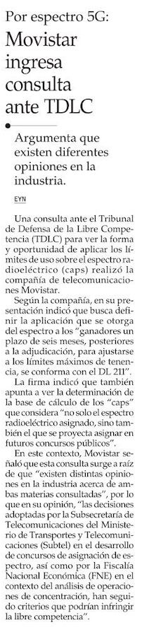 Movistar presenta consulta al TDLC por límites de espectro y acusa "incertidumbre" ante segunda licitación de 5G - (Pulso)