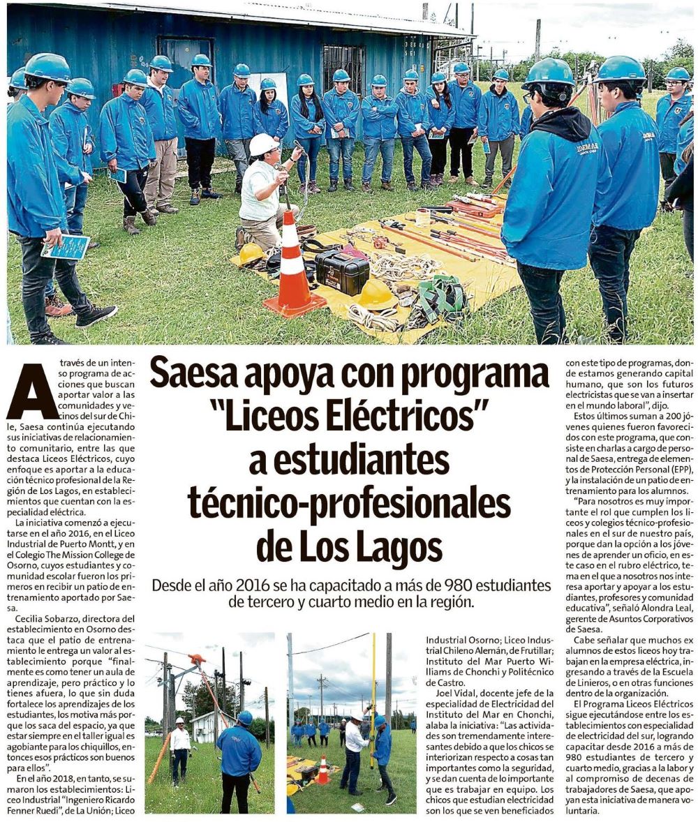 Saesa apoya con programa "Liceos Eléctricos" a estudiantes técnicos-profesionales de los Ríos - (El Austral de Los Ríos)