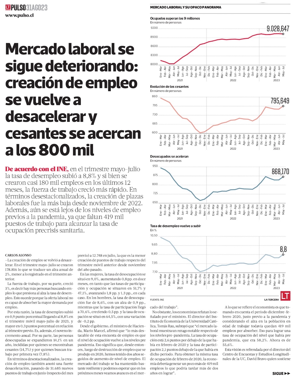 Mercado laboral no logra contener mayor búsqueda de trabajo y desempleo sube a 8,8% - (El Mercurio de Santiago)