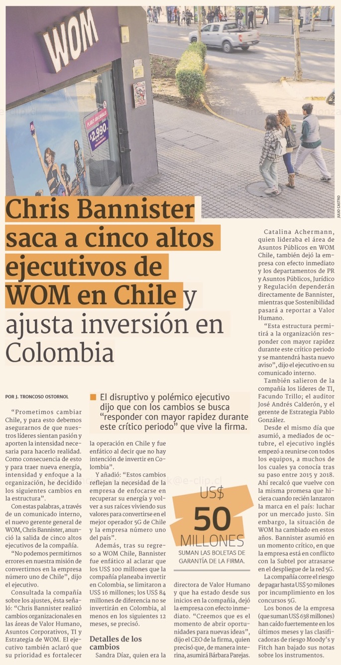 Terremoto en WOM: despiden a parte de la primera línea gerencial - (Pulso)