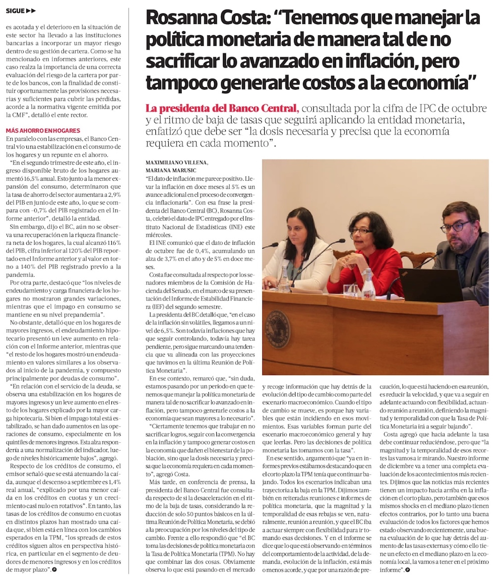 Banco Central: principal riesgo son las condiciones financieras internacionales - (Diario Financiero)