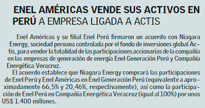 Enel Américas vende activos de generación en Perú - (Diario Financiero)