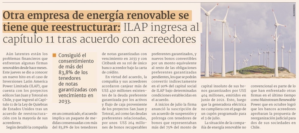 ILAP se declara en quiebra para reestructurar deuda - (El Mercurio de Santiago)