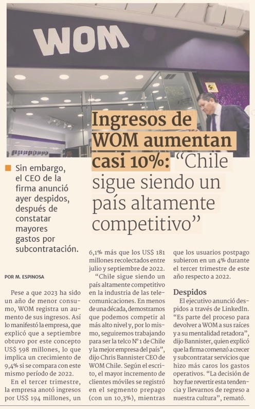 WOM sube ingresos a septiembre y supera los 8 millones de clientes - (Pulso)