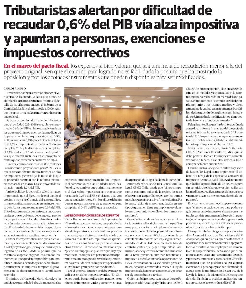 Expertos cuestionan idea de Hacienda de subir la carga a contribuyentes de mayores ingresos - (El Mercurio de Santiago)