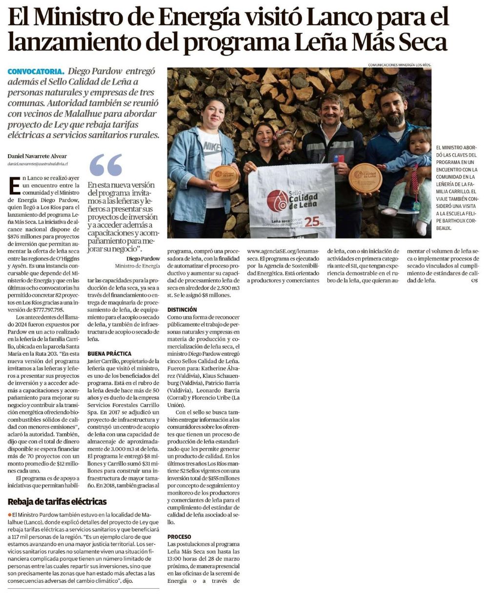 Energía lanza nueva convocatoria del programa Leña Más Seca - (Crónica de Chillán)