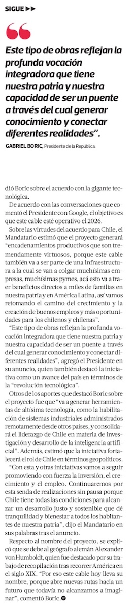 Gobierno se alía con Google: Harán primer cable submarino de Internet entre Australia y América del Sur - (La Segunda)