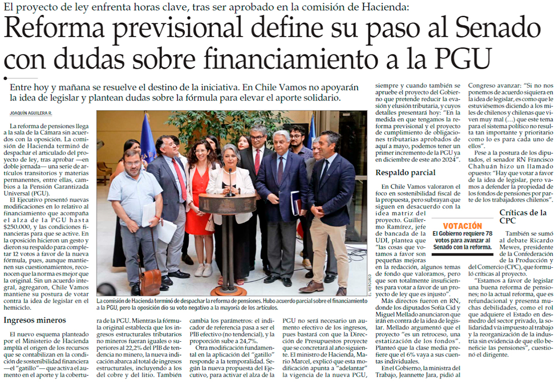 Comisión de Hacienda de la Cámara aprueba alza de la PGU y despacha proyecto en semana clave para pensiones - (Diario Financiero)