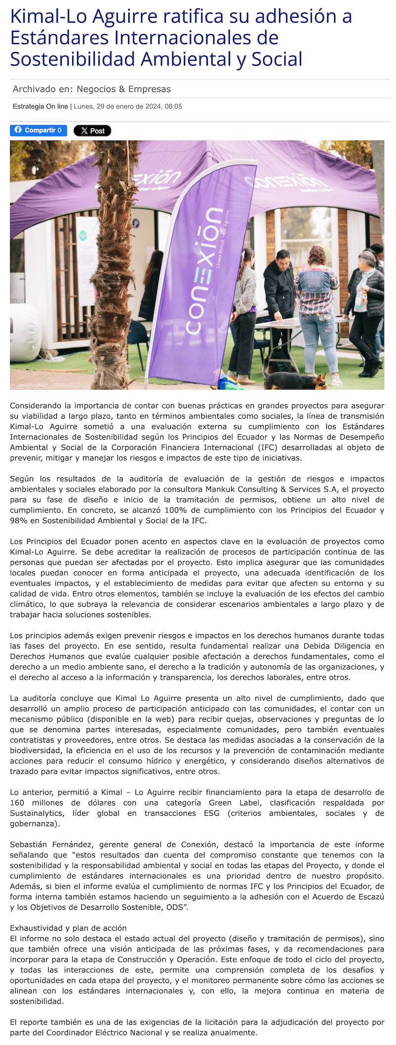 Kimal-Lo Aguirre ratifica su adhesión a Estándares Internacionales de Sostenibilidad Ambiental y Social - (reporteminero)