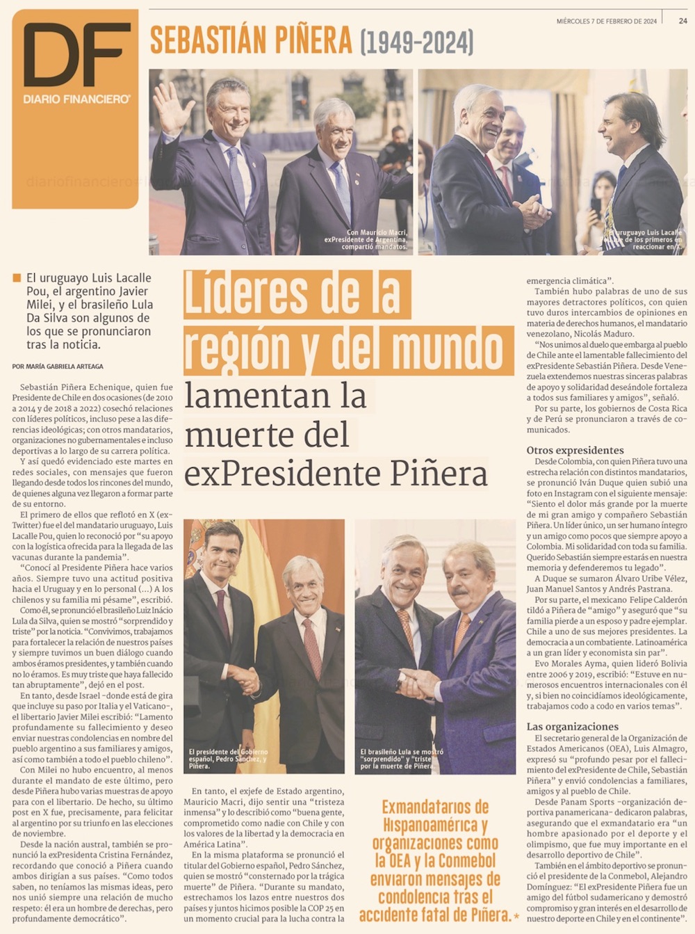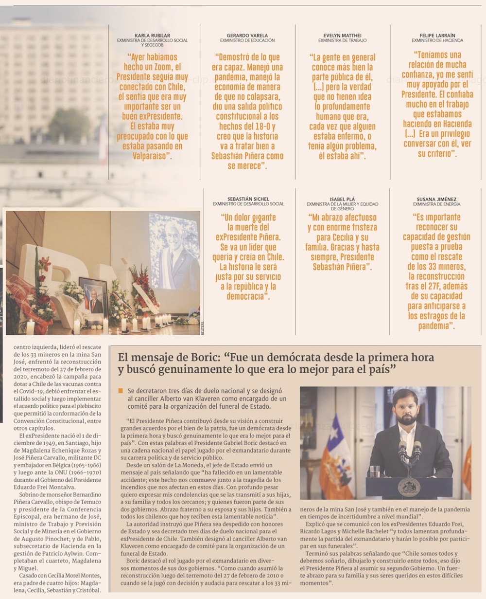 El expresidente Sebastián Piñera muere al capotar su helicóptero en el lago Ranco: no pudo abrir su cinturón de seguridad - (El Mercurio de Santiago)