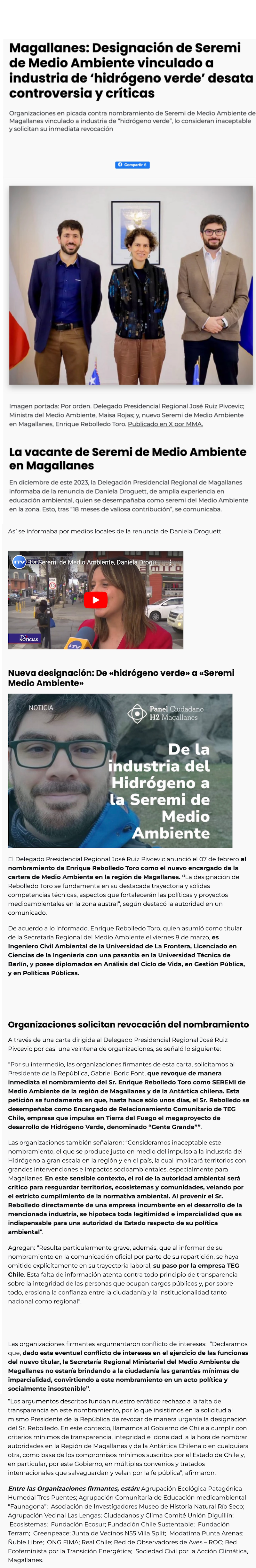 Cuestionan a nuevo Seremi de Ambiente de Magallanes: Viene de megaproyecto de Hidrógeno Verde - (eldesconcierto)