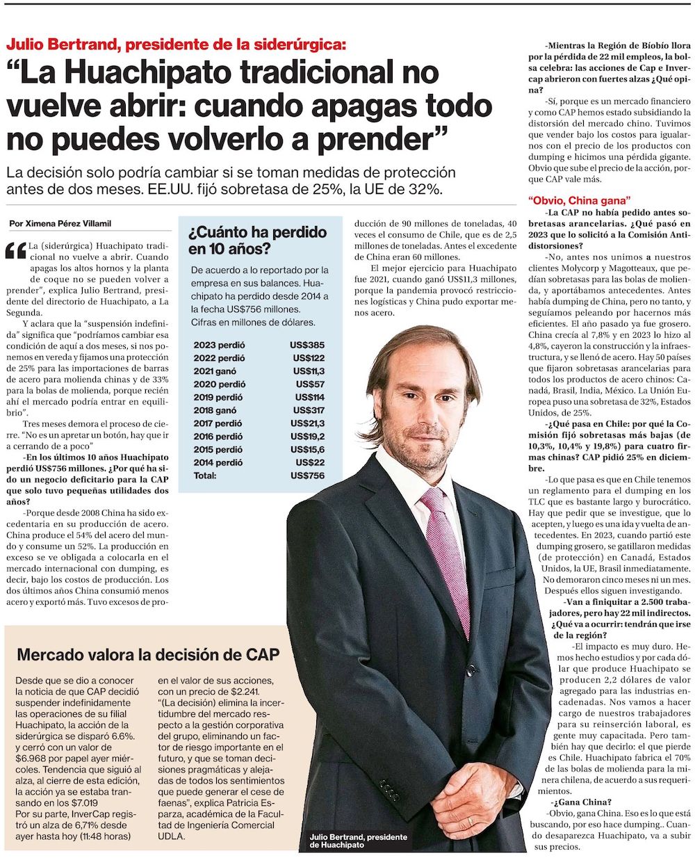 Gremios dimensionan alto impacto en el Biobío tras cese de operaciones de Huachipato - (El Mercurio de Santiago)