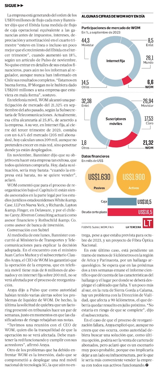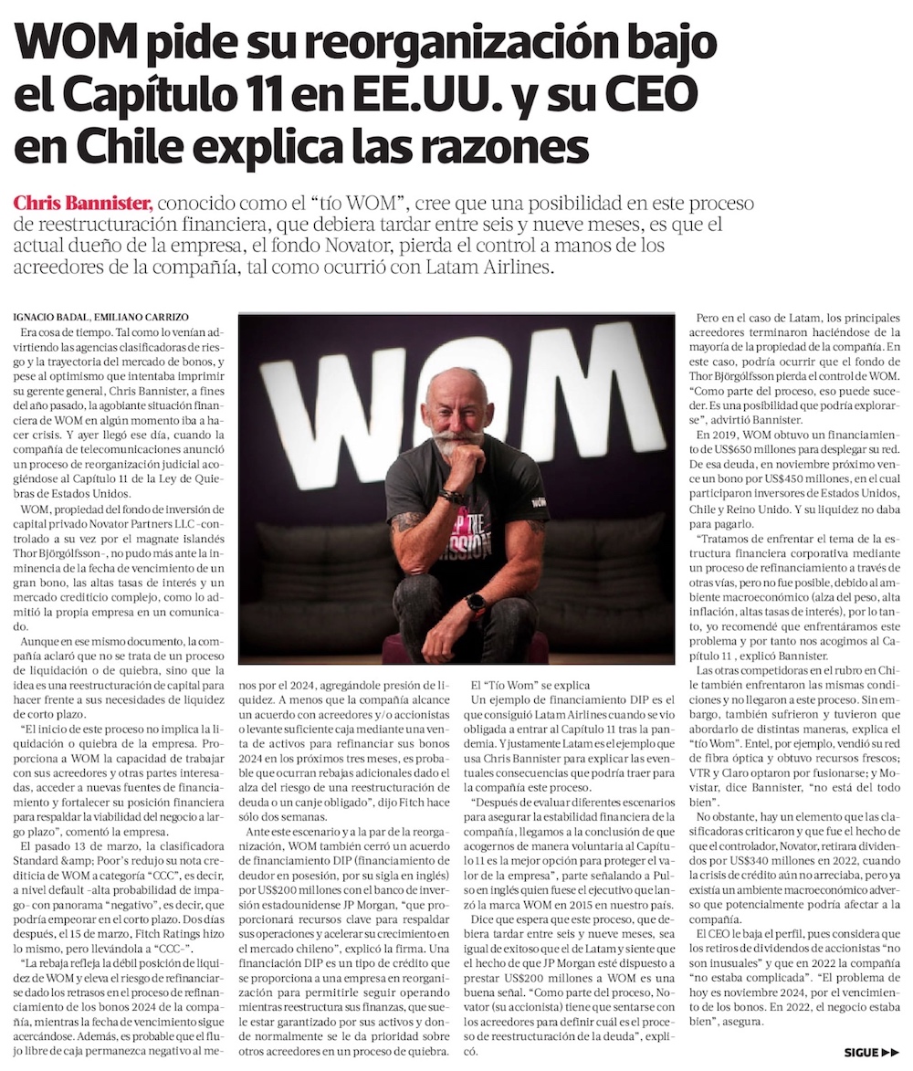WOM se acoge a reorganización bajo el Capítulo 11 de EEUU: el plan para saldar US$ 1.630 millones de deudas extranjeras y locales - (Diario Financiero)