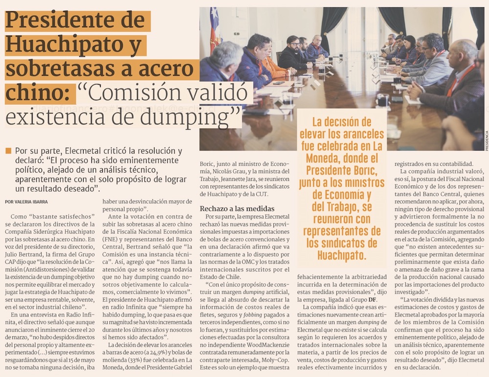 Presidente de Huachipato reafirma que hay dumping tras voto desfavorable de FNE y representantes del Banco Central a sobretasas - (Pulso)